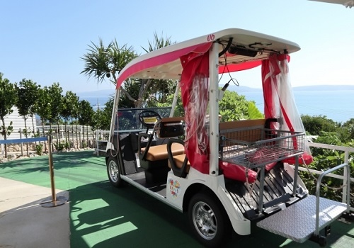 この施設のユニークなポイントの一つは、自動運転のカートであらかじめ指定されたルートを進みながら入口まで移動するという、ワクワクするような体験ができるところでしょう。この移動中、周囲の美しい風景を楽しむことができます。